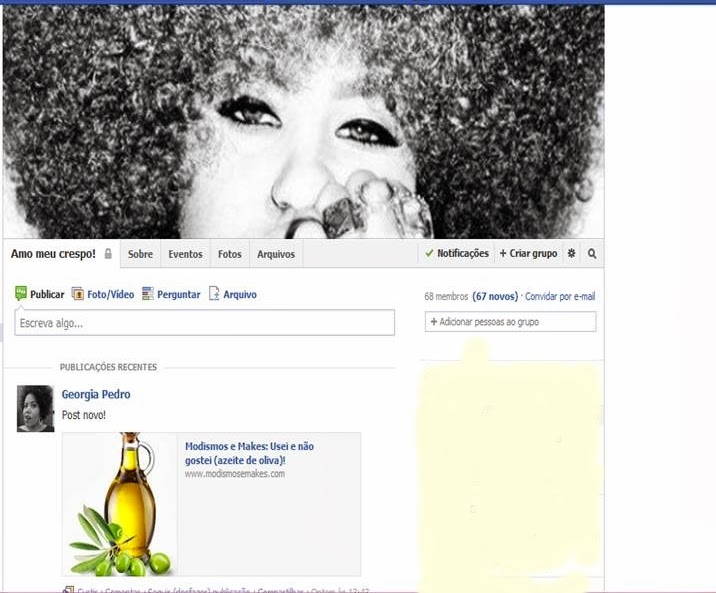 Vim convidar vocês que se interessam pelo assunto "Cabelos Crespos e Cacheados", a participarem do grupo "Amo meu crespo" lá no Facebook. O grupo é novo e eu gostaria que você que acessa o blog se inscreva e faça parte do grupo.